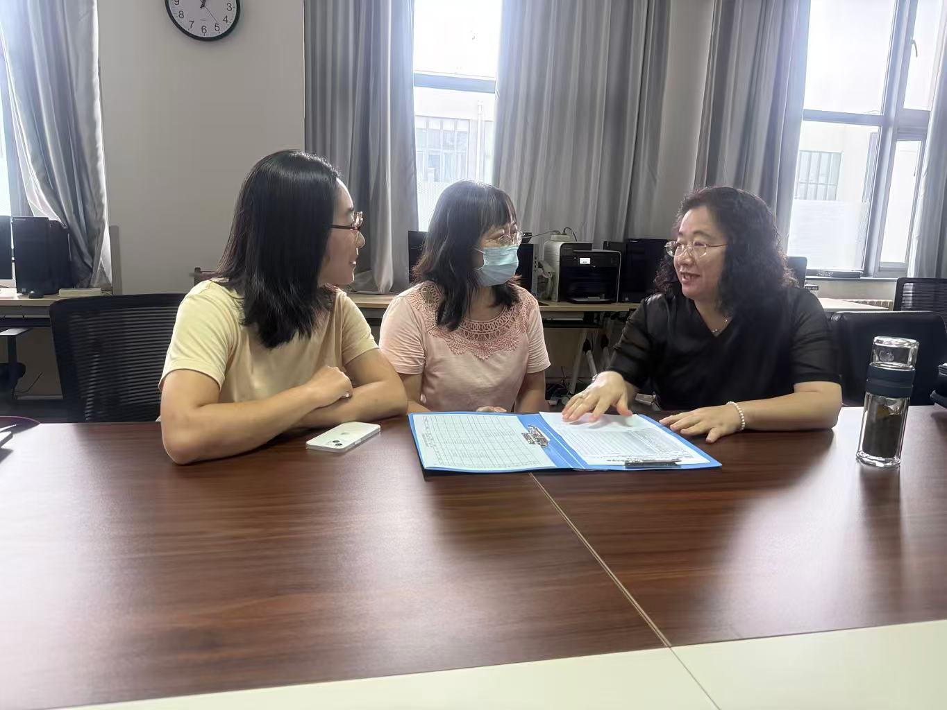 英美文学与文化课程组成员丁梓倩(左)、申彩红(中)和张慧芳(右)在集体备课
