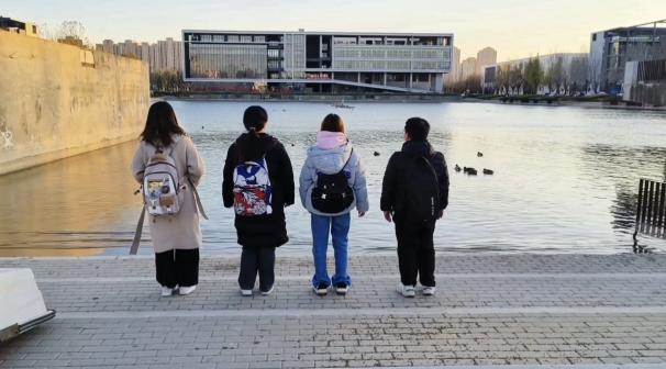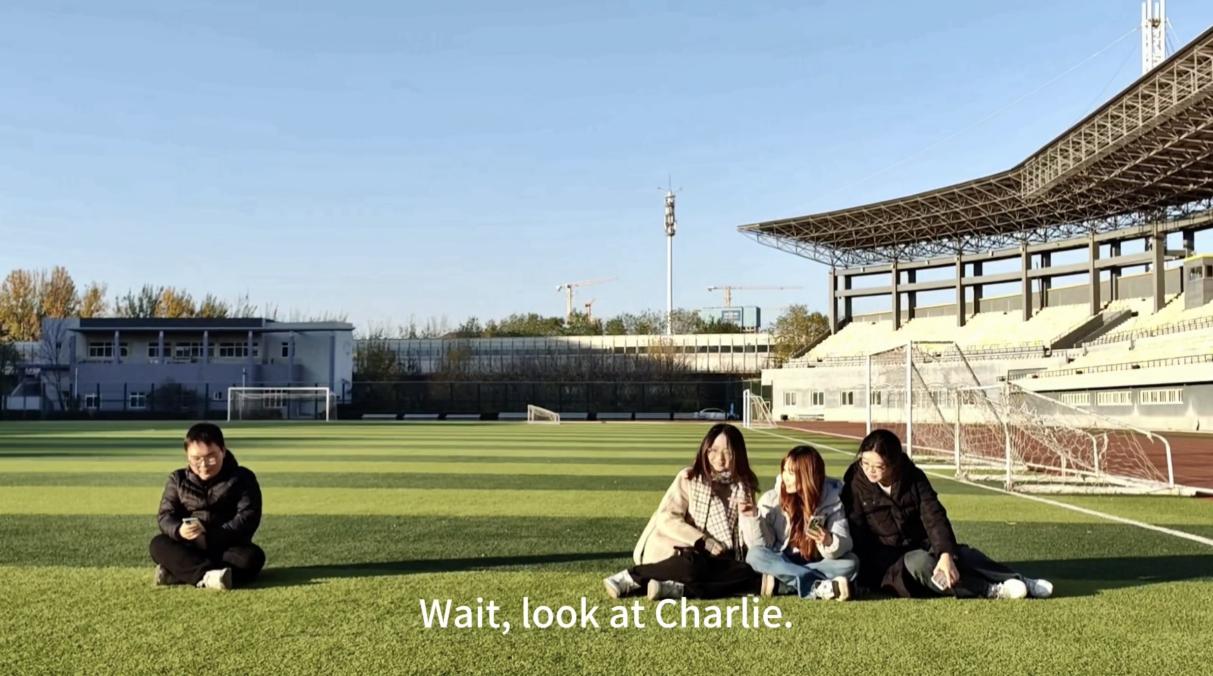 我们组的微电影改编自英语小说《壁花少年》(The Perks of Being a Wallflower)的经典片段——图书馆的邂逅、派对的热络与地道的深情喊话,还原主角的青春悸动与成长。拍摄地点精选校内N座图书馆、N座咖啡厅、统计湖及操场,这些场景承载着我们日常学习生活的点滴回忆,是青春故事最天然的舞台,既以校园标志性场景凸显对母校的热爱,又借熟悉的环境传递青春共鸣,更让故事在真实的校园氛围中更具代入感与感染力。通过微电影制作,我们不仅深化了对文学作品的理解,提升了镜头语言与团队协作能力,更用影像定格了校园记忆,让对学校的情感在创作中愈发真挚浓烈。