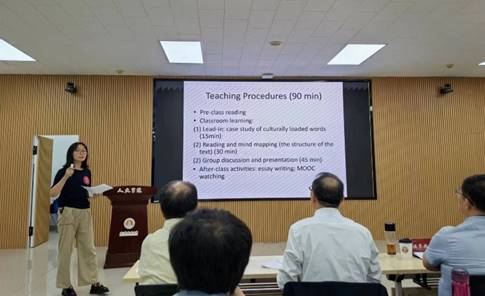 赛后,曲美茹老师表示,本次比赛能够取得成绩,一方面因为得到了院系领导的大力支持,特别是组织赛前试讲。老师们积极参加并提出宝贵的建议,帮助反复打磨课件,使曲老师深刻地体会到,要从学生的实际能力和需求出发设计教学活动,注重学生的学习体验,实现师生的良好互动,从而有效地完成教学目标。另一方面源于长期积累,决赛时要求紧扣材料内容进行说课,有30分钟的准备时间。在此时间内要完成对指定材料的深入理解,并设计出合理的教学目标和有效的教学步骤。之所以能较好地完成此环节,是因为曲老师在平时的教学中注重对文本内容和结构的梳理,并通过大量的课堂实践不断调整教学目标,优化教学步骤。在此次比赛中,曲老师有幸领略到其他高校教师的风采,同时也收获了专家评委的宝贵意见,促使她不断反思自身的教学方式,打破固有模式,促进教学内容和方法的不断创新以及个人教学风格的不断发展,帮助她在今后的教学中取得更大的进步。
